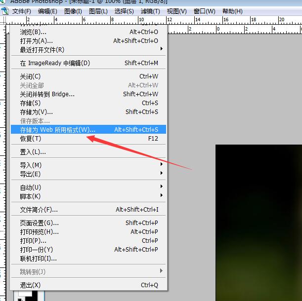 第二步:点击菜单文件,选择存储为web所用格式,意思就是存储为网页所用格式!